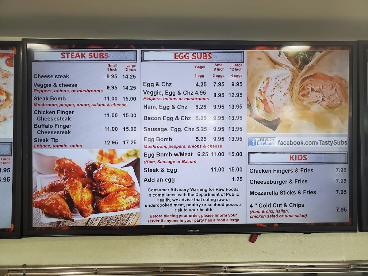 Tasty Subs Menu